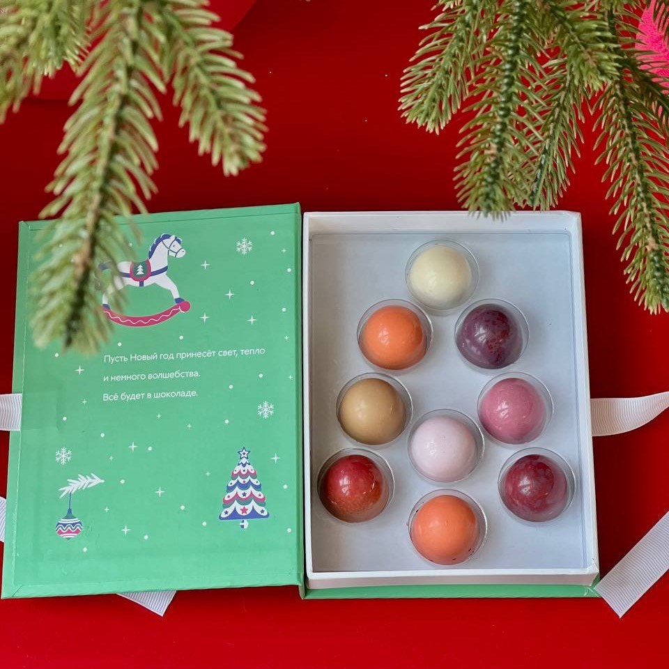 Конфеты изготовлены вручную из швейцарского шоколада Felchlin, с акцентом на баланс вкуса, текстуры и натуральные ингредиенты.